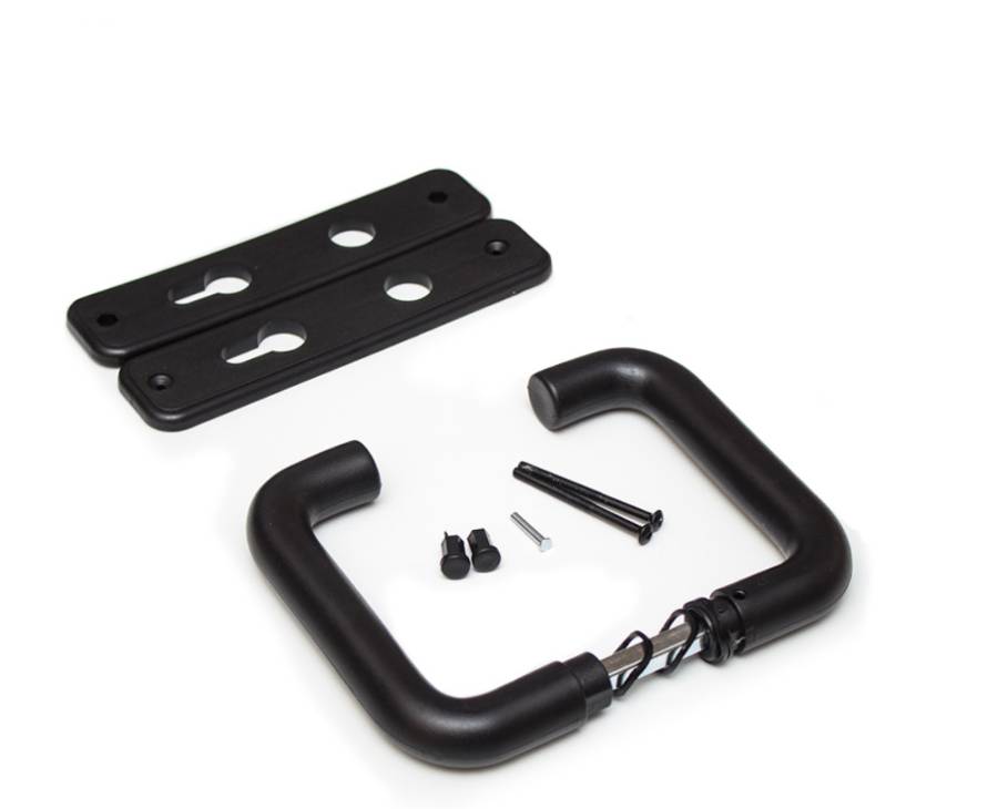 - Okucie klamka-klamka U-FORM, szyld krótki, tworzywo sztuczne w kolorze czarnym