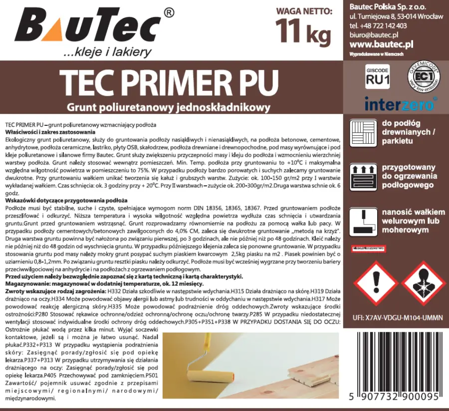 Wolny od rozpuszczalników, ekologiczny grunt poliuretanowy, służy do gruntowania podłoży nasiąkliwych i nienasiąkliwych, na podłoża betonowe C 25/30, cementowe, anhydrytowe, przeszlifowane płyty gipsowe, podłoża ceramiczne, lastriko, płyty OSB, skałodrzew, podłoża drewniane, pod masy wyrównujące, pod kleje poliuretanowe PU, kleje polimerowe MS, kleje poliuretanowo-silanowe SPU. Grunt służy zwiększeniu przyczepności masy i kleju do podłoża, wzmocnieniu wierzchniej warstwy podłoża.Grunt należy stosować wewnątrz pomieszczeń. Minimalna temperatura podłoża przy gruntowaniu to +15*C i maksymalna wilgotność względna powietrza w pomieszczeniu 75%. W przypadku podłoży bardzo porowatych i suchych zalecamy gruntowanie dwukrotne. Przy gruntowaniu unikać tworzenia się kałuż i grubszych warstw.