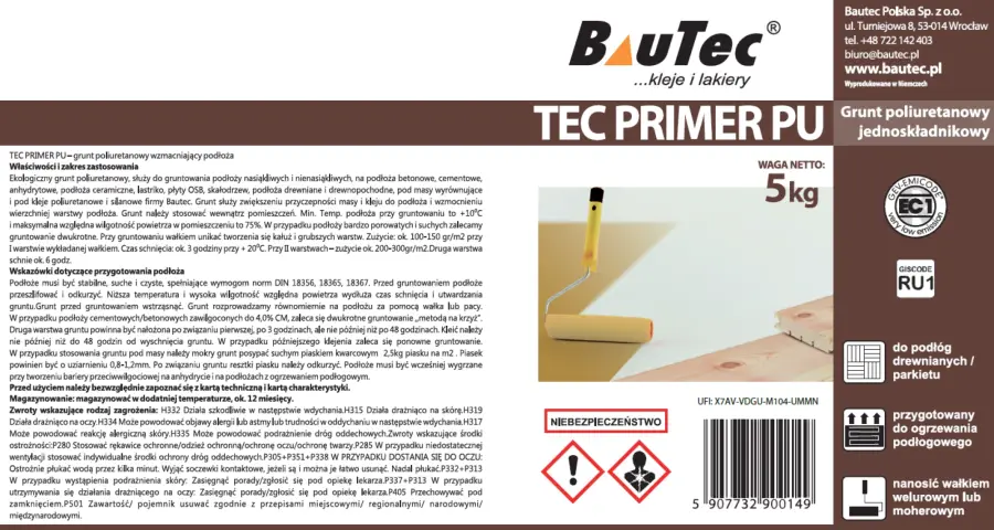 Wolny od rozpuszczalników, ekologiczny grunt poliuretanowy, służy do gruntowania podłoży nasiąkliwych i nienasiąkliwych, na podłoża betonowe C 25/30, cementowe, anhydrytowe, przeszlifowane płyty gipsowe, podłoża ceramiczne, lastriko, płyty OSB, skałodrzew, podłoża drewniane, pod masy wyrównujące, pod kleje poliuretanowe PU, kleje polimerowe MS, kleje poliuretanowo-silanowe SPU. Grunt służy zwiększeniu przyczepności masy i kleju do podłoża, wzmocnieniu wierzchniej warstwy podłoża.Grunt należy stosować wewnątrz pomieszczeń. Minimalna temperatura podłoża przy gruntowaniu to +15*C i maksymalna wilgotność względna powietrza w pomieszczeniu 75%. W przypadku podłoży bardzo porowatych i suchych zalecamy gruntowanie dwukrotne. Przy gruntowaniu unikać tworzenia się kałuż i grubszych warstw.