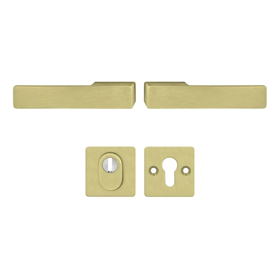 Libera klamko + klamka + rozeta WB z zabezpieczeniem (Klasa 3 antywłamaniowa),kolor F3 złoty. Przeznaczona do drzwi zewnętrznych.