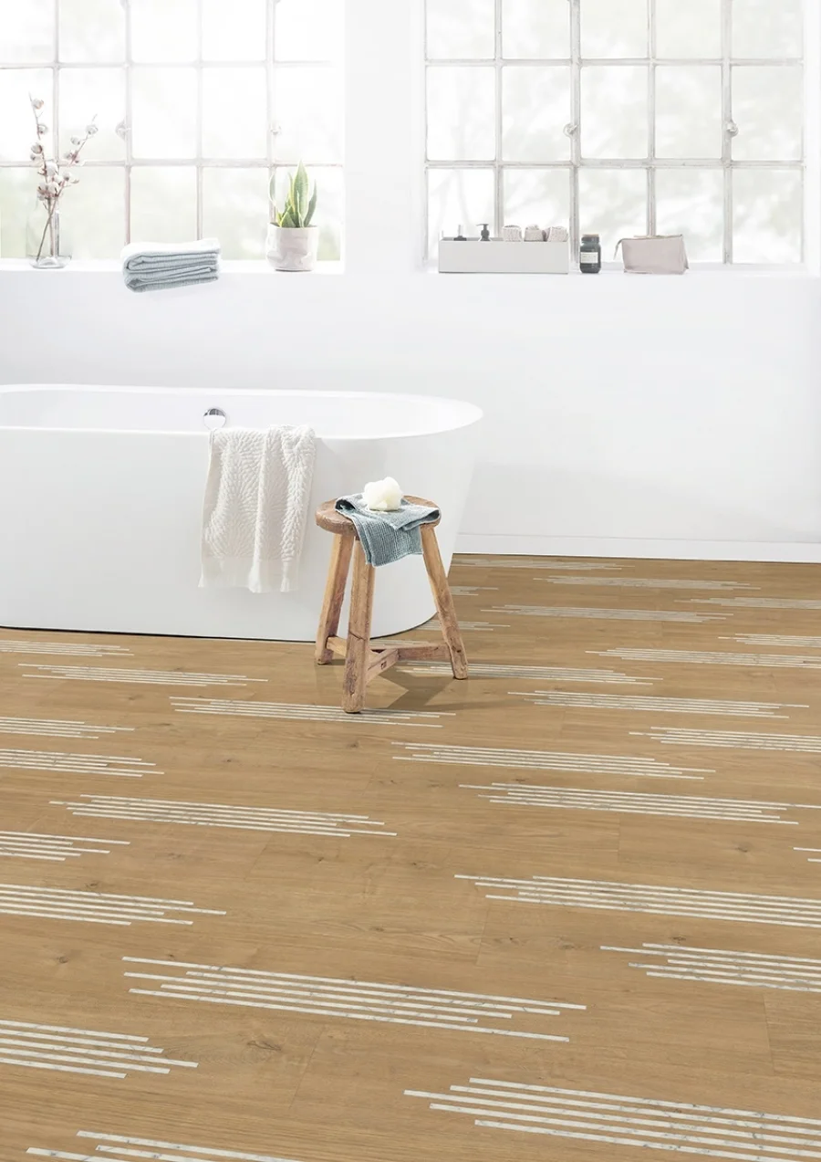 Dzięki wilgocioodpornej płycie nośnej GreenTec podłoga z serii Design nadaje się również do łazienek i przestrzeni komercyjnych. To, co na zewnątrz, nie jest mniej ważne od wartości wnętrza: Autentyczny wygląd drewna czy kamienia sprawia, że podłoga GreenTec naturalnie przyciąga wzrok w każdym pomieszczeniu.