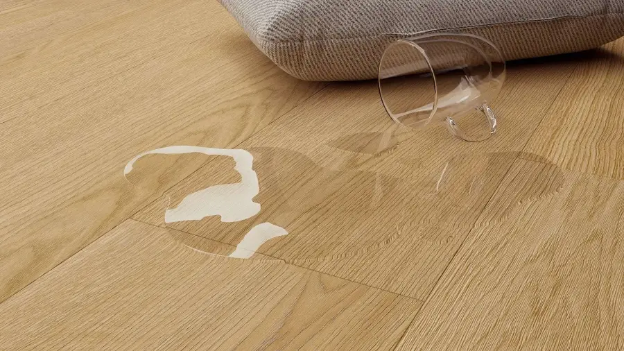 Specjalna warstwa ochronna ułatwia utrzymanie podłogi w czystości i chroni ją przed zabrudzeniami.