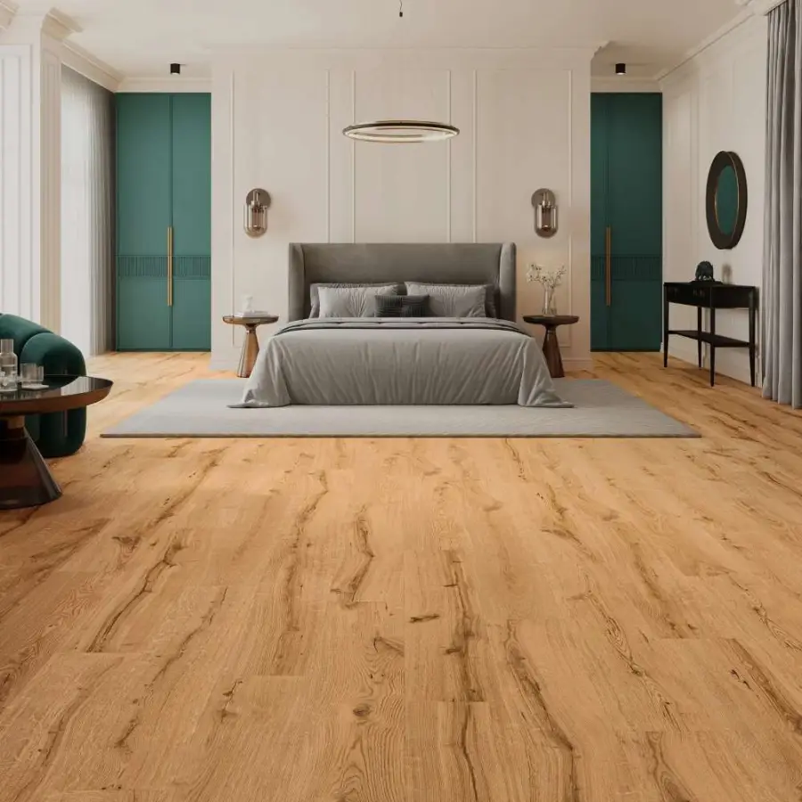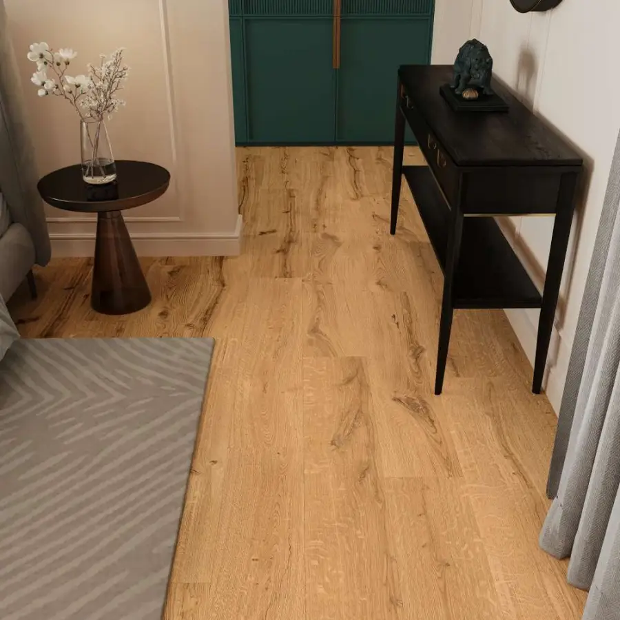 Realistyczna struktura i precyzyjne odwzorowanie kolorów sprawiają, że podłoga wygląda jak prawdziwe drewno.
