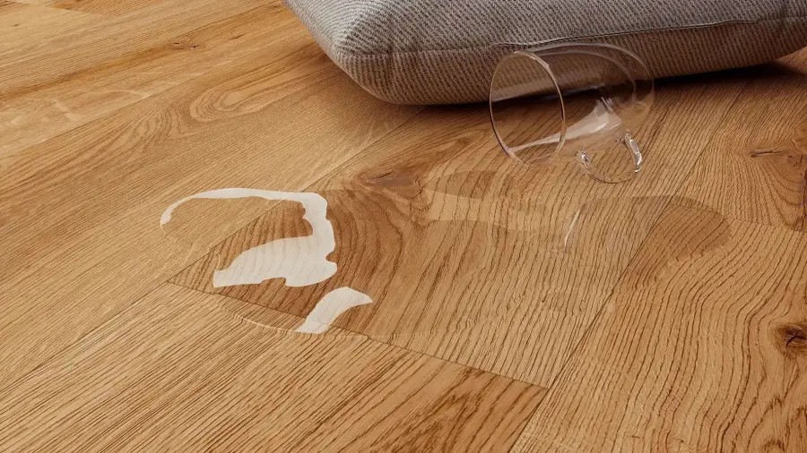 Specjalna warstwa ochronna ułatwia utrzymanie podłogi w czystości i chroni ją przed zabrudzeniami.