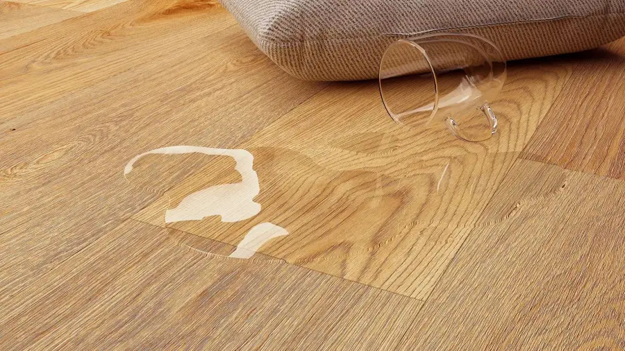 Specjalna warstwa ochronna ułatwia utrzymanie podłogi w czystości i chroni ją przed zabrudzeniami.