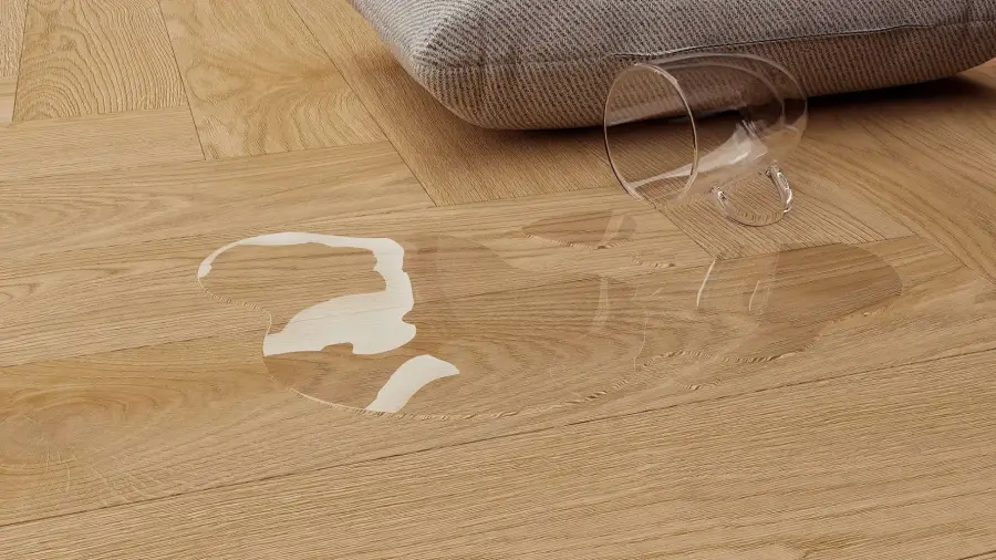 Specjalna warstwa ochronna ułatwia utrzymanie podłogi w czystości i chroni ją przed zabrudzeniami.