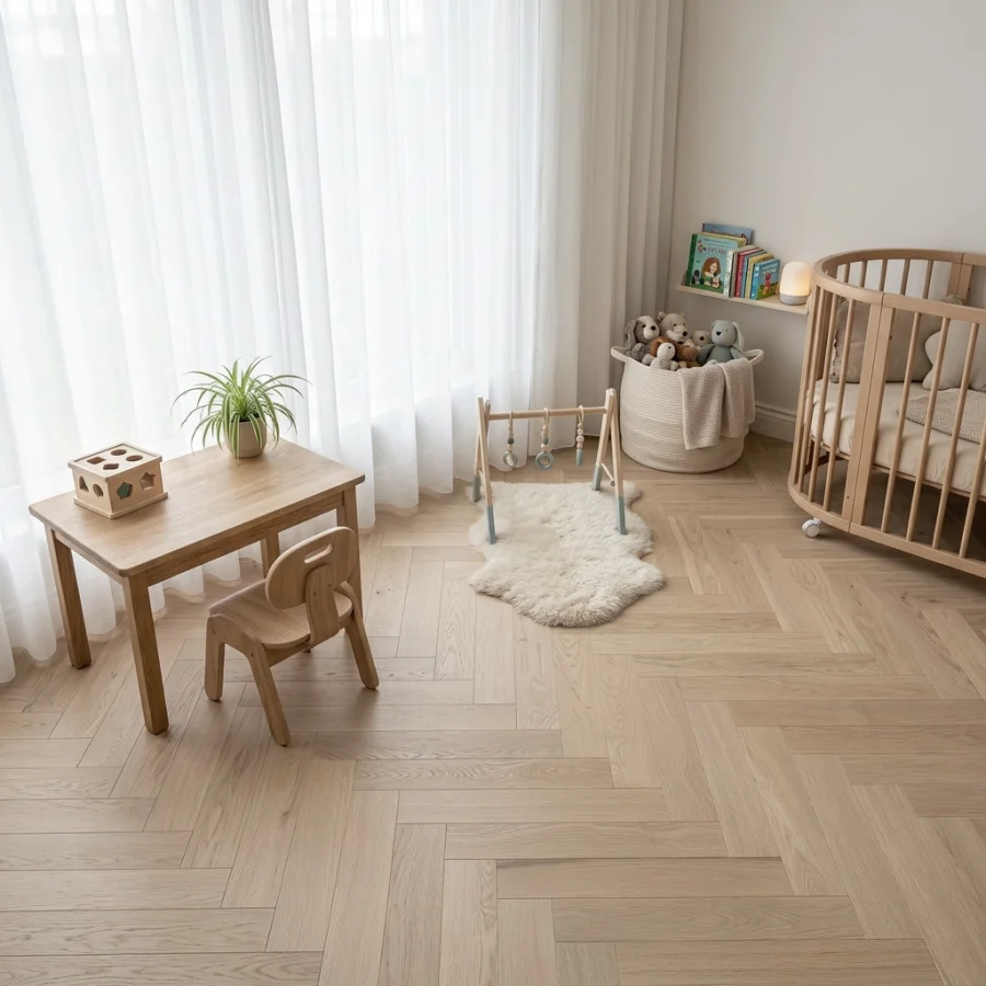Proces szczotkowania uwydatnia naturalny układ słojów i nadaje powierzchni subtelną, elegancką fakturę, przyjemną w dotyku. Dzięki temu podłoga zachowuje autentyczny, szlachetny charakter drewna, który doskonale komponuje się zarówno z nowoczesnymi aranżacjami, jak i bardziej klasycznymi, przytulnymi wnętrzami.