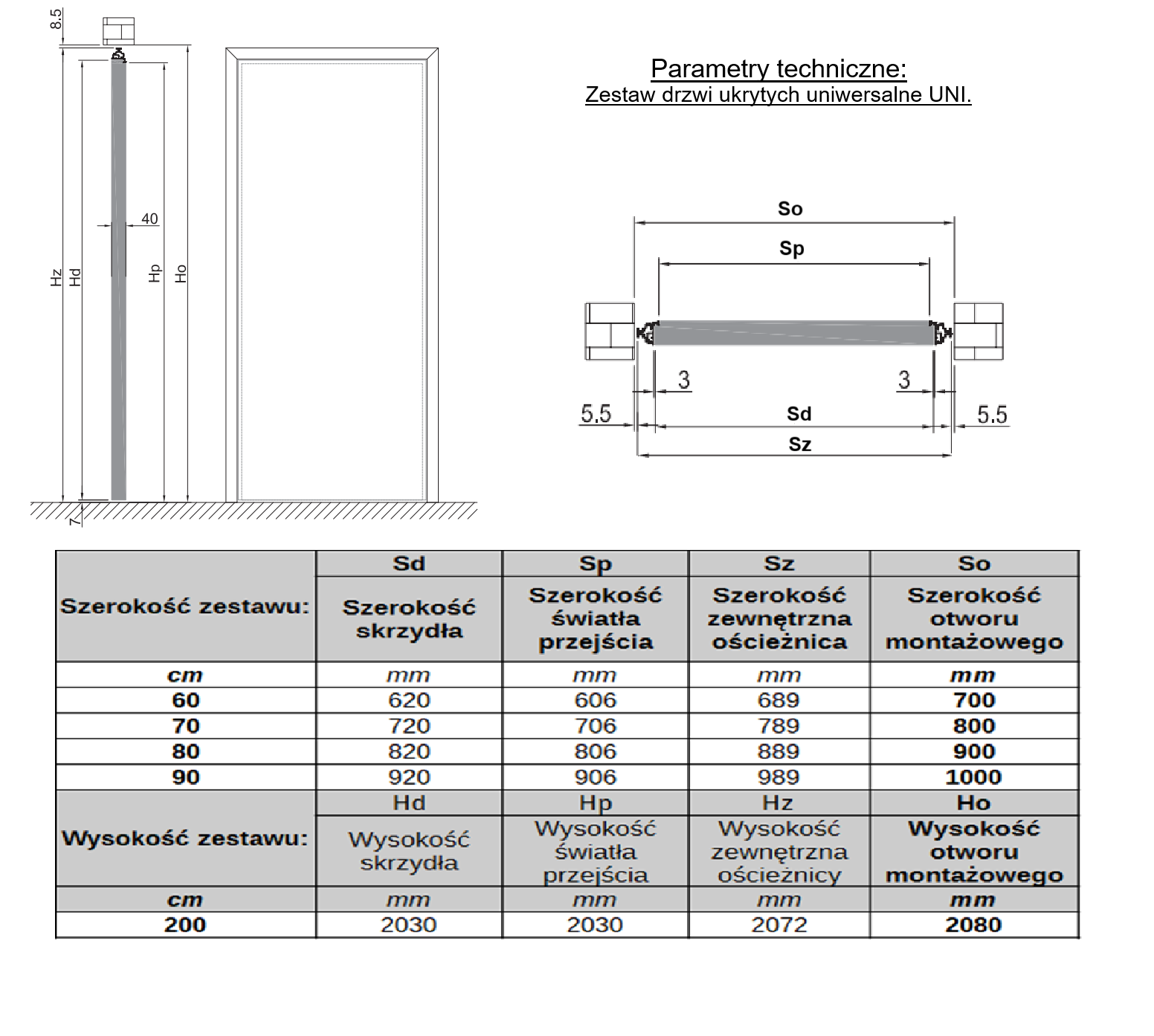 Minimalna Wysokość otworu montażowego : | 2080 mm |